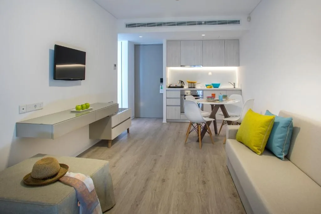 Enjoy balmy Mediterranean evenings on the balcony of your Deluxe Apartment. The perfect accommodation choice for couples, friends or small families, everything you need for a relaxing, hassle-free holiday is here. Beautifully furnished and fitted with resort-style comforts, our spacious studios promise an exceptional stay.